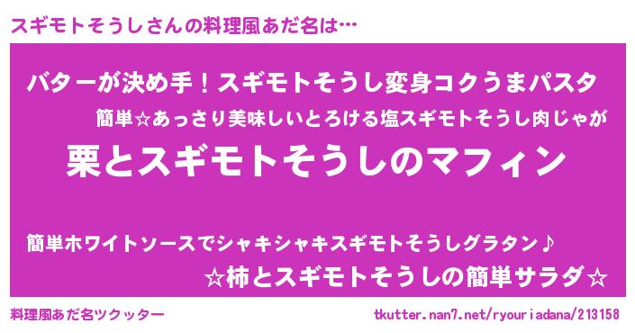 | ヘコむあだ名 | 『スギモトそうし(震え声)』『スギっ子』 |