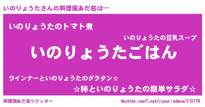 | 男性向けラノベタイトル風あだ名 | 『イノリョウタスレイヤー』 |