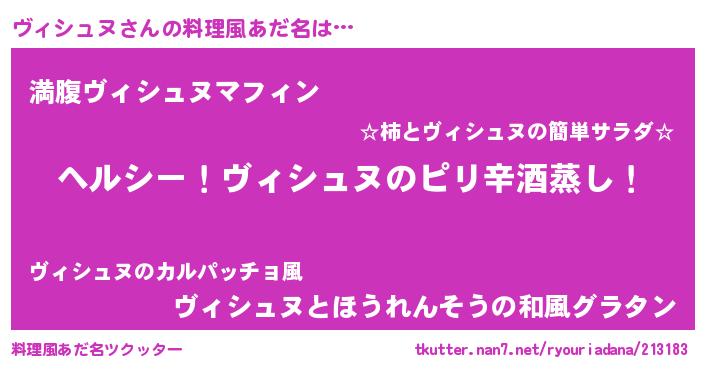 | 男性向けラノベタイトル風あだ名 | 『Re:ヴィシュヌから始める異世界生活』 |