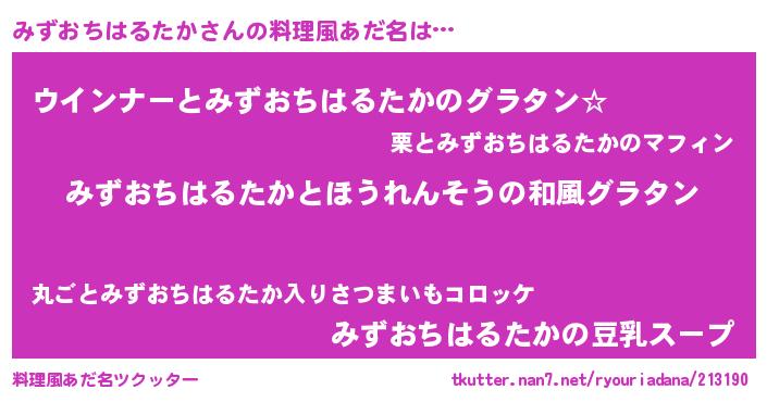 | 女子向けラノベタイトル風あだ名 | 『みずおちはるたかの玉の輿計画!』 |