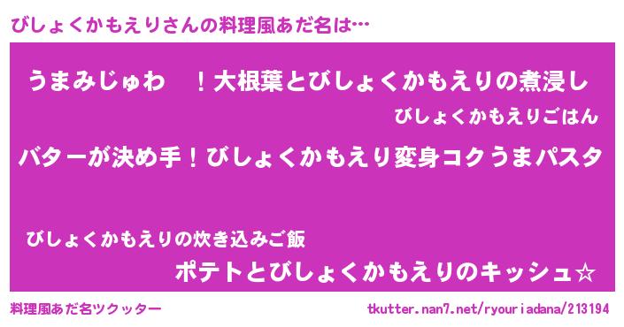 | ピコ太郎風あだ名 | 『ビビ太郎』『ピビ史郎』『ビシ四郎』 |