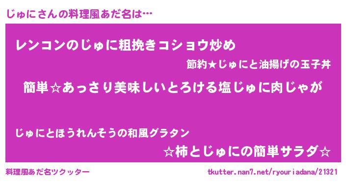 | ヘコむあだ名 | 『じゅに(苦笑)』『じゅにゅー』 |
