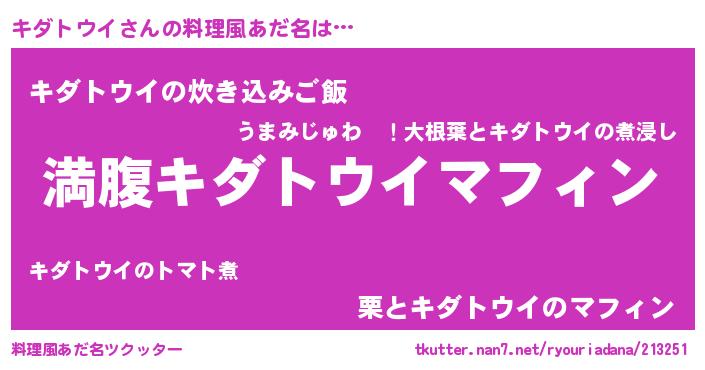 | 男性向けラノベタイトル風あだ名 | 『キダトウイという概念が存在しない退屈な世界 』 |