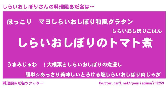| 欧米人風あだ名 | 『ダニエルしらいおしぼり』 |