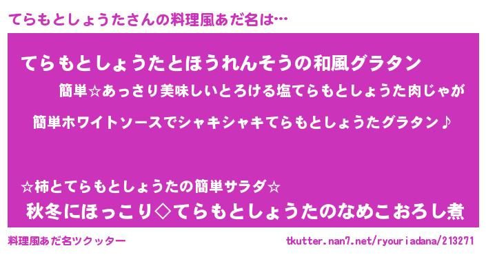 | ヘコむあだ名 | 『てらお』『てらもとしょうた(遠い目)』 |