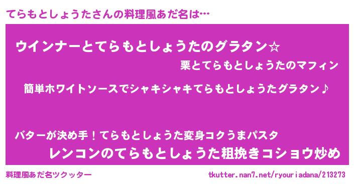 | ポケモン風あだ名 | 『ヒテラモトショウタ』『テラモダネ』 |