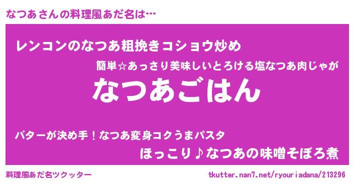 | 恥ずかしいあだ名 | 『ナツアデラックス』『プリティーなつあ』 |