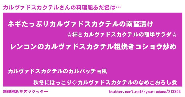 | 意味不明あだ名 | 『自称カルヴァドスカクテル』 |