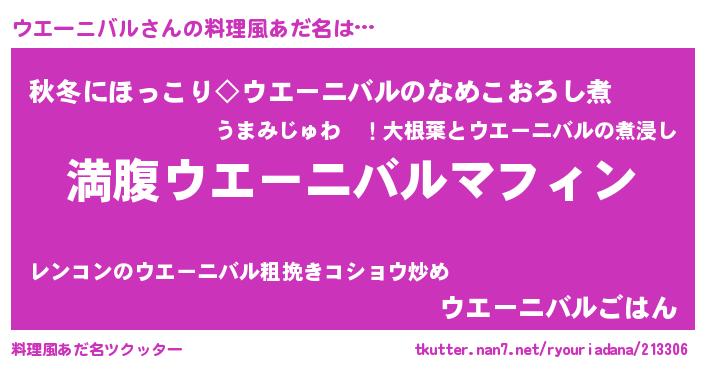 | 男性向けラノベタイトル風あだ名 | 『ウエーニバルという概念が存在しない退屈な世界 』 |