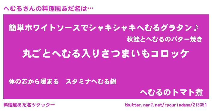 | 意味不明あだ名 | 『住所不定無職へむる(4歳)』 |