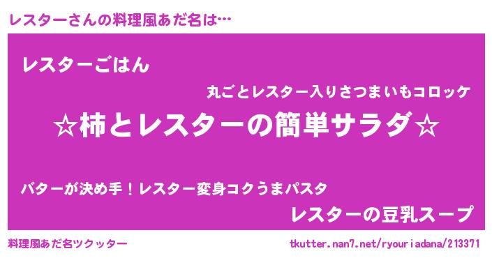 | 意味不明あだ名 | 『めかぶ科レスター属』『自称レスター』 |