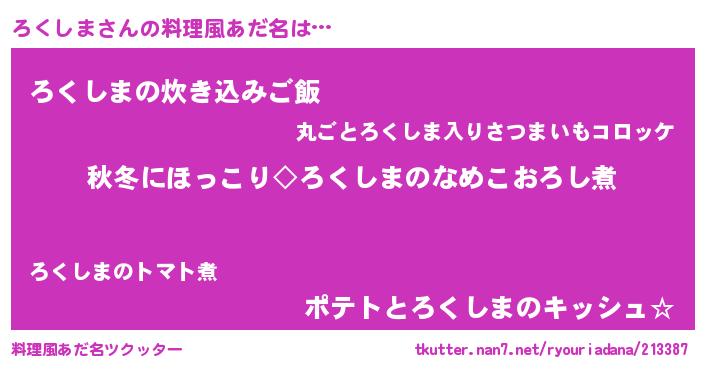| 男性向けラノベタイトル風あだ名 | 『ろくしまに滅ぼされるだけの簡単なお仕事です』 |