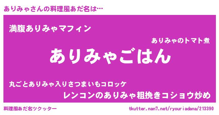 | 胡散臭い通販商品みたいなあだ名 | 『絶対に幸福をもたらす水素水…その名も「ありみゃ」』 |