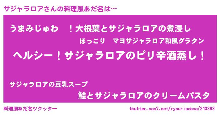 | 男性向けラノベタイトル風あだ名 | 『Re:サジャラロアから始める異世界生活』 |