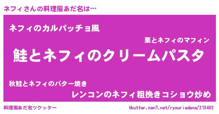 | 男性向けラノベタイトル風あだ名 | 『ノーゲーム・ノーネフィ』 |