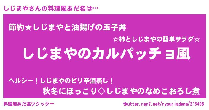 | ヘコむあだ名 | 『しじにー』『酢こんぶ』『しじっぺ』 |