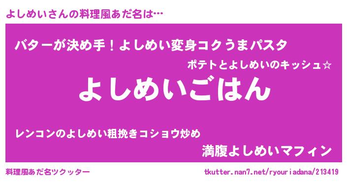 | ヘコむあだ名 | 『よしめい(苦笑)』『よしを』 |