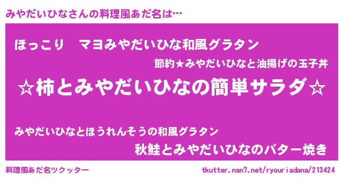 | ヘコむあだ名 | 『みやだいひな(笑)』『みやっふぃ~』 |
