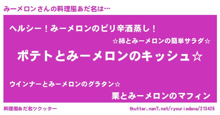 | 女子向けラノベタイトル風あだ名 | 『みーメロンの卵を拾いまして』 |