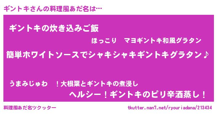 | 男性向けラノベタイトル風あだ名 | 『ギントキの嫁は女の子じゃないと思った?』 |