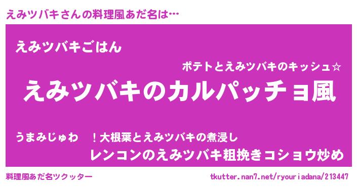 | 意味不明あだ名 | 『住所不定無職えみツバキ(10歳)』 |