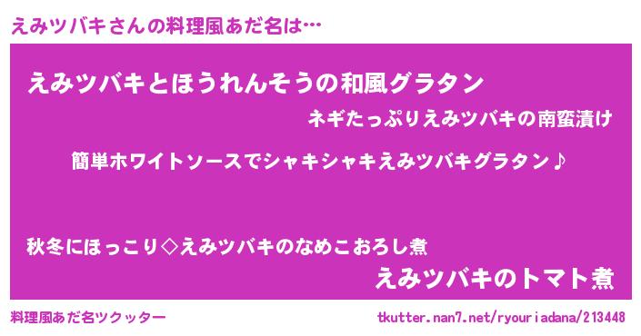 | 男性向けラノベタイトル風あだ名 | 『えみツバキの嫁は女の子じゃないと思った?』 |