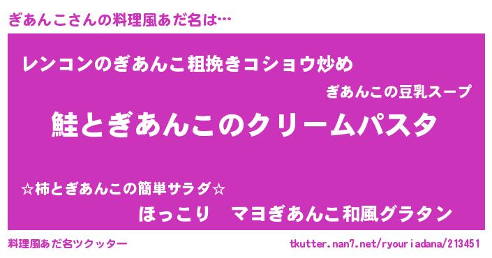 | 男性向けラノベタイトル風あだ名 | 『ノーゲーム・ノーギアンコ』 |