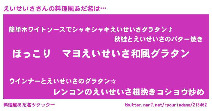 | ヘコむあだ名 | 『えいっ子』『えいせいさ(遠い目)』 |