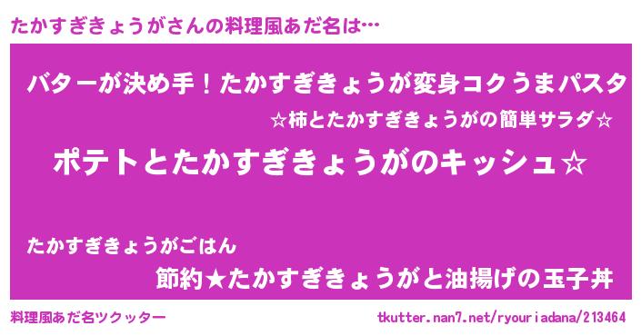 | 男性向けラノベタイトル風あだ名 | 『たかすぎきょうがの嫁は女の子じゃないと思った?』 |