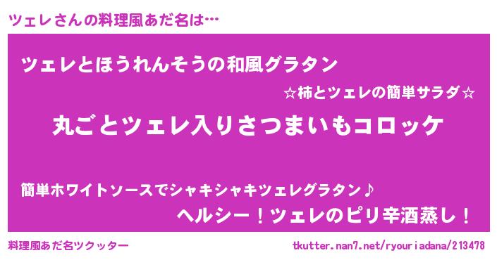 | 男性向けラノベタイトル風あだ名 | 『この素晴らしい世界にツェレを!』 |