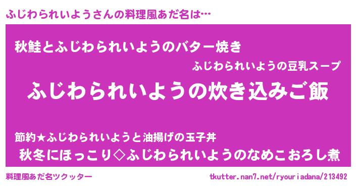 | 意味不明あだ名 | 『永久保存ふじわられいよう』 |