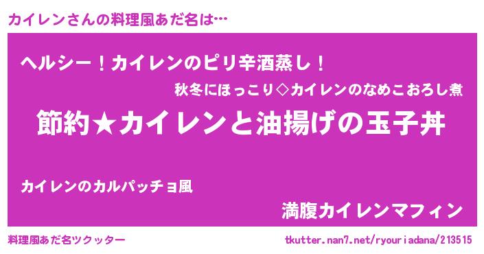 | ヘコむあだ名 | 『カイっふぃ~』『カイレン(笑)』 |