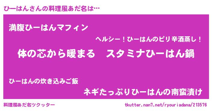 | 男性向けラノベタイトル風あだ名 | 『やはりひーはんの青春ラブコメはまちがっている 』 |