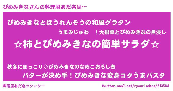 | ヒーロー風カッコイイあだ名 | 『正義の使者ぴめみきな』 |