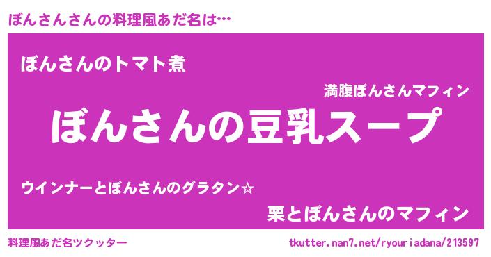 | 女子向けラノベタイトル風あだ名 | 『ぼんさんは平凡を望む』 |