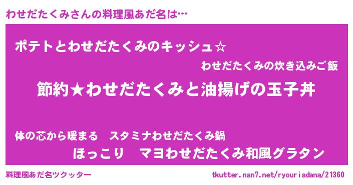 | ポケモン風あだ名 | 『ワセチュウ』『ヒワセダタクミ』 |