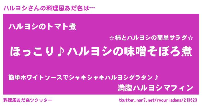 | 意味不明あだ名 | 『ペロリンハルヨシ』『永久保存ハルヨシ』 |