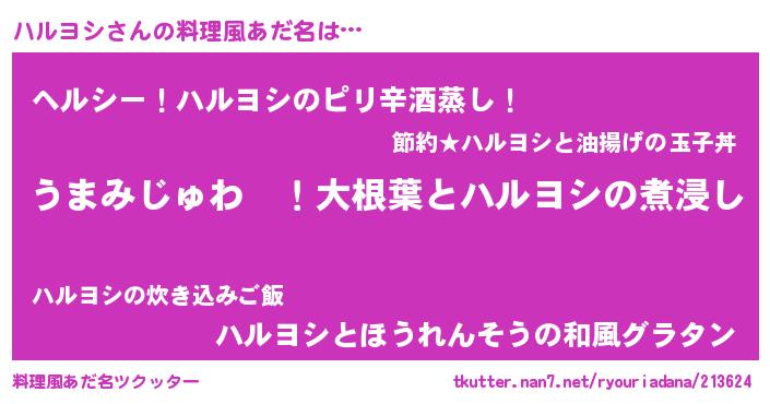 | ヘコむあだ名 | 『レバニラ』『ハルふぇ~』 |
