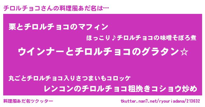| ヘコむあだ名 | 『豆乳』『チロもー』『チロっちょ』 |