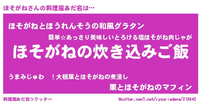 | 意味不明あだ名 | 『ヨモギ科ほそがね属』『自称ほそがね』 |
