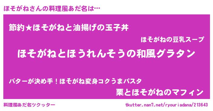 | 胡散臭い通販商品みたいなあだ名 | 『億万長者になれる霊験あらたかなお札…その名も「ほそがね」』 |