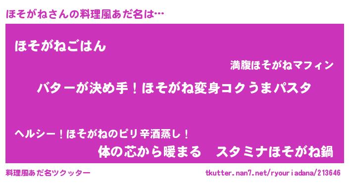 | ヘコむあだ名 | 『豆乳』『ほそがね(笑)』『ほそもー』 |