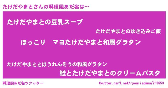 | ヘコむあだ名 | 『たけ太郎』『つくし』『たけもー』 |