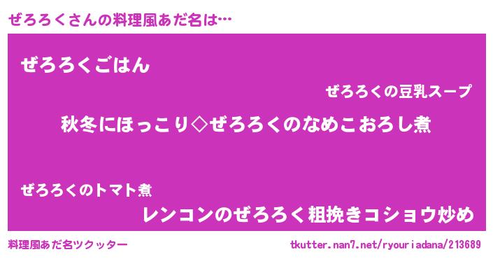 | 意味不明あだ名 | 『ニラ科ぜろろく属』『自称ぜろろく』 |