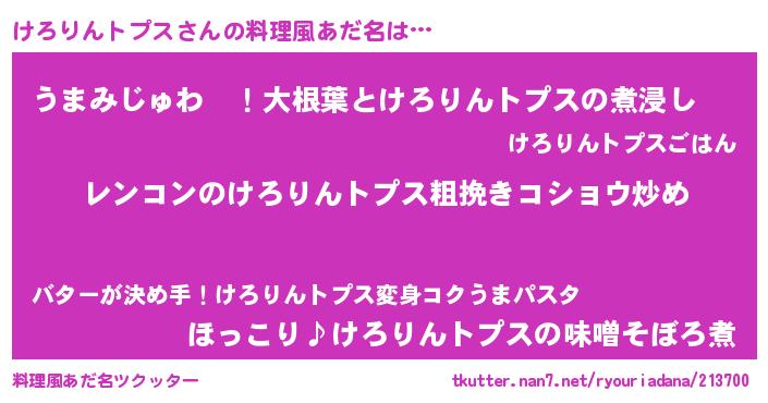 | 女子向けラノベタイトル風あだ名 | 『けろりんトプスなんてお断りですっ。』 |