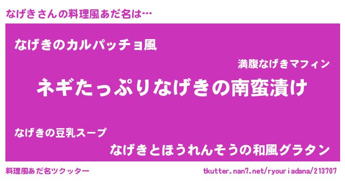 | ピコ太郎風あだ名 | 『ナコ五郎』『ピコナ郎』『ナゲ一郎』 |
