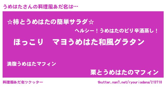 | 男性向けラノベタイトル風あだ名 | 『この素晴らしい世界にうめはたを!』 |