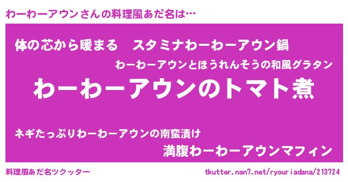 | 自動車の名前っぽいあだ名 | 『フィッワ』『ワクア』『デミワ』 |
