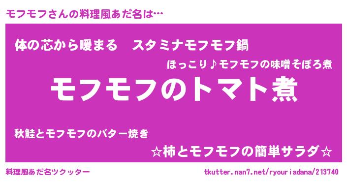 | ヒーロー風カッコイイあだ名 | 『正義の使者モフモフ』『ネオモフモフ』 |