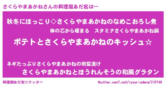 | 意味不明あだ名 | 『とにかく怪しいさくらやまあかね』 |